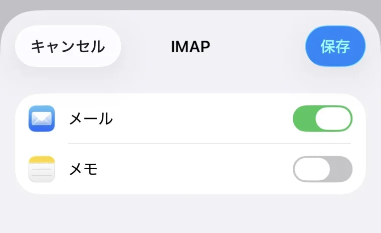 IMAPはメールがサーバー側で管理されるため、iPhoneを買い替えたり再設定した場合でも、同じ状態で同期しやすい方式です。