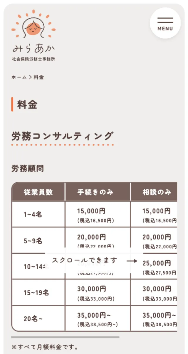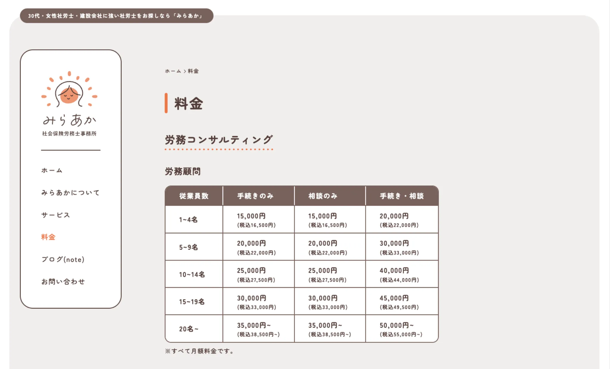 みらあか社会保険労務士事務所様のWebサイト制作を担当しました。